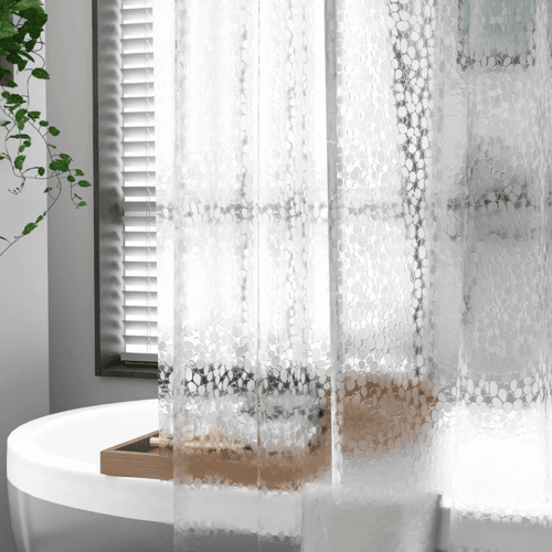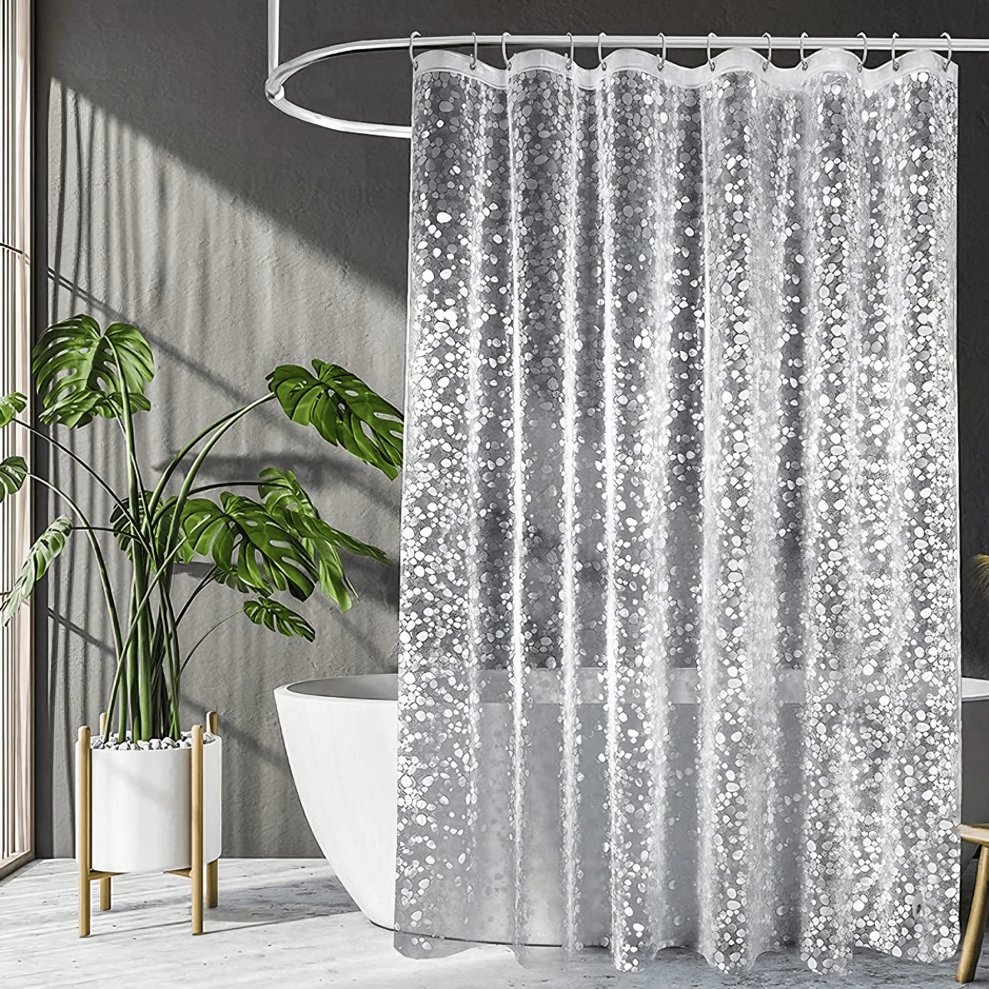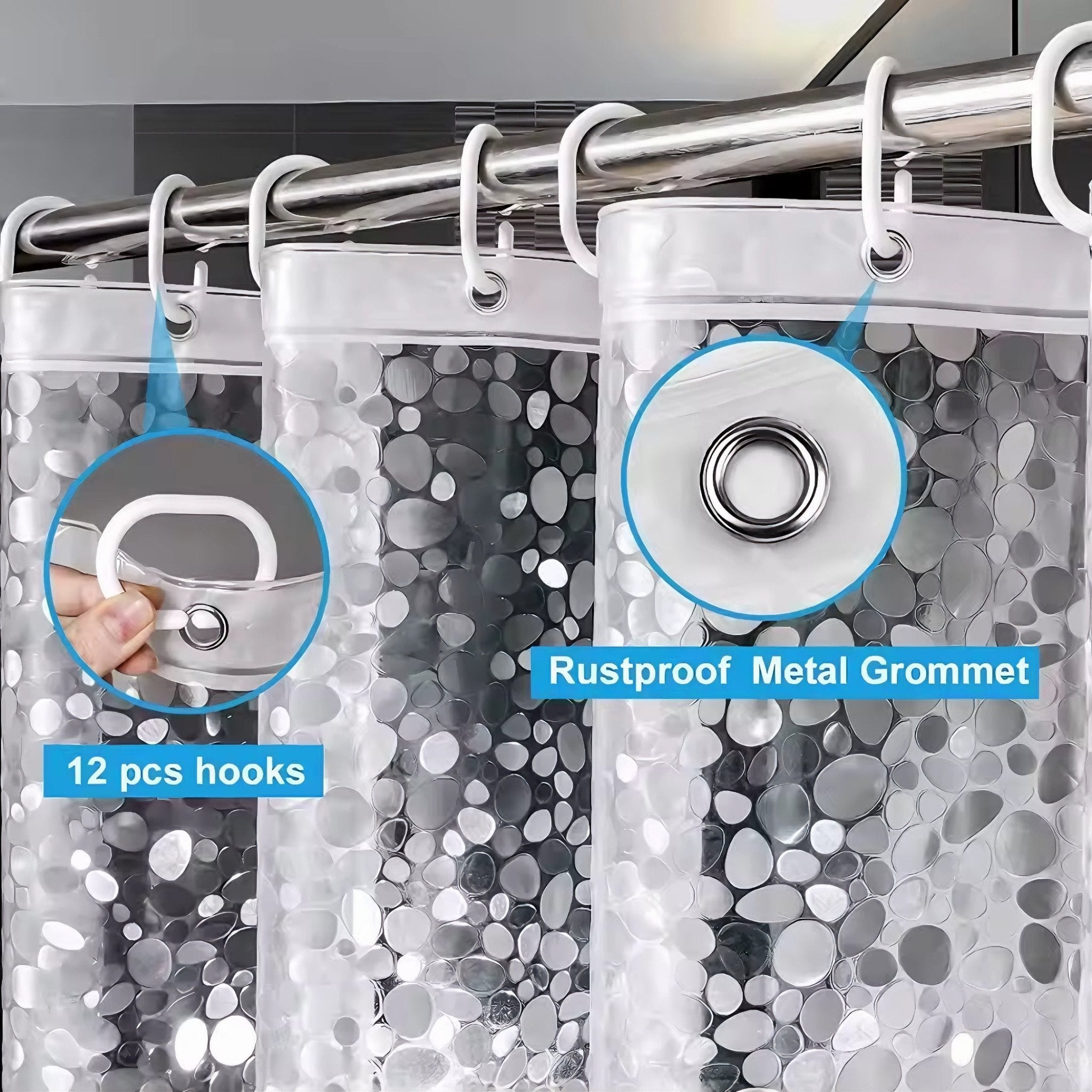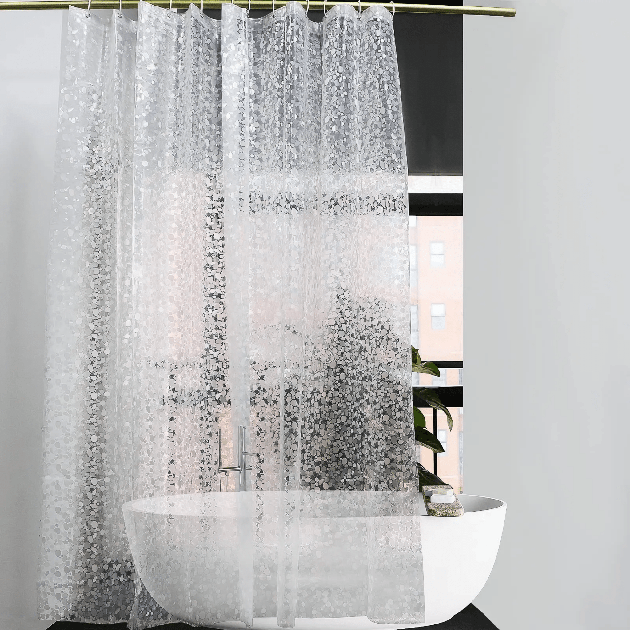 Elevate your bathroom with this clear shower curtain, designed to combine style and practicality. Made from premium PEVA material, this waterproof PEVA shower curtain features a modern pebble design that allows natural light to brighten your space while maintaining the privacy you need. Whether you're searching for a translucent shower curtain, a plastic shower curtain, or an elegant bathroom curtain, this product adds a touch of sophistication and functionality to your bathroom décor..